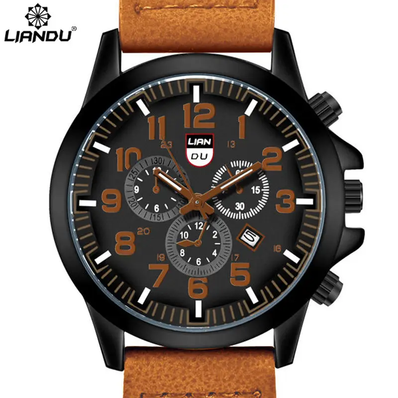 معلومات اضافية LIANDU الرجال ساعات كوارتز 30 M للماء جلدية الأزياء و عارضة الرياضة العسكرية المعصم relogio masculino esportivo