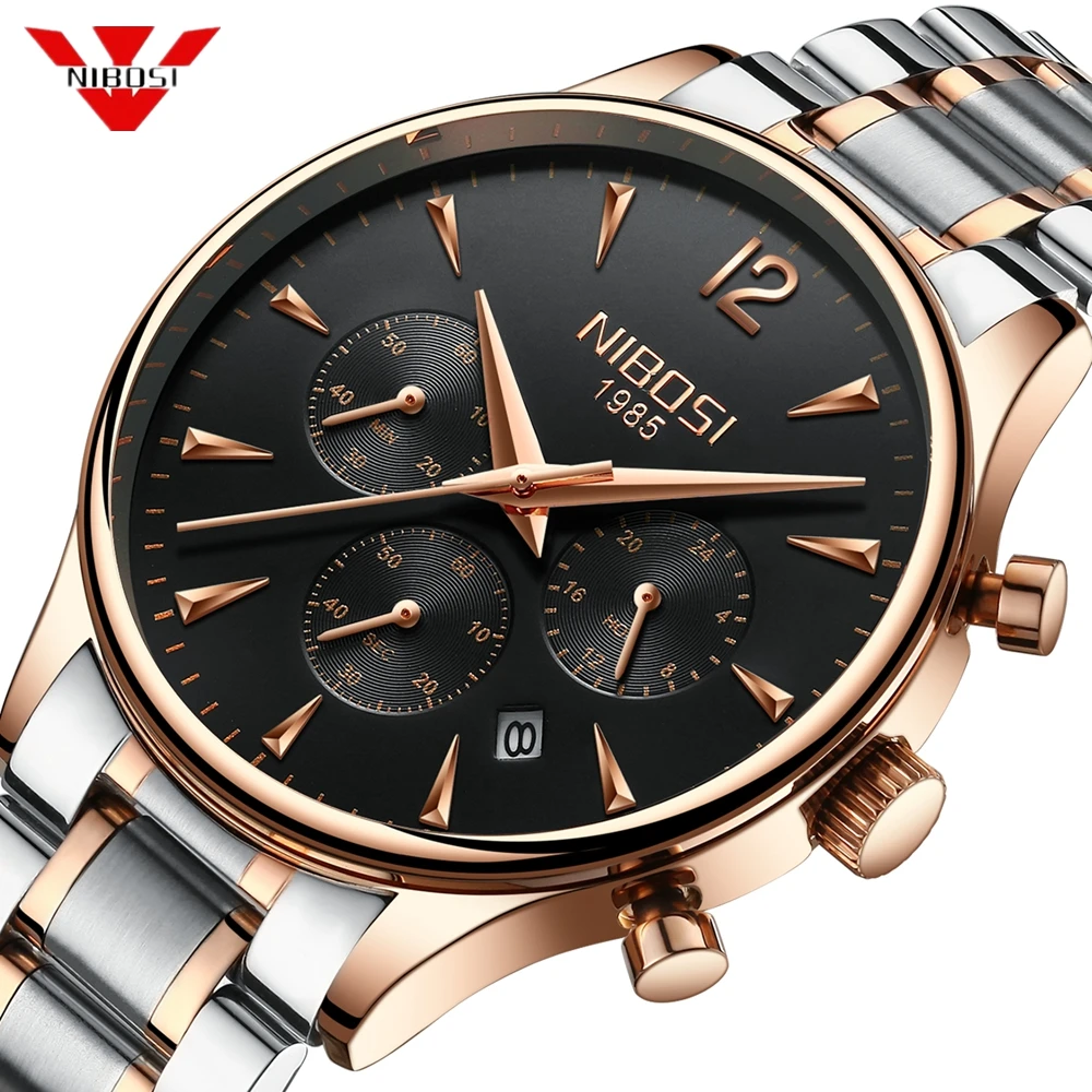 معلومات اضافية NIBOSI رجل الرياضة الساعات الرجال أعلى العلامة التجارية الفاخرة سات ساعة كوارتز التلقائي التاريخ ساعة الذكور الجيش العسكرية للماء ساعة معصم
